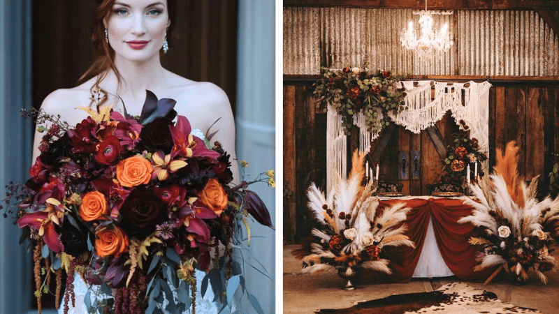 Imagine the warmth of fiery bouquets and the elegance of moody bridesmaid dresses adding a touch of drama and passion to your special day.